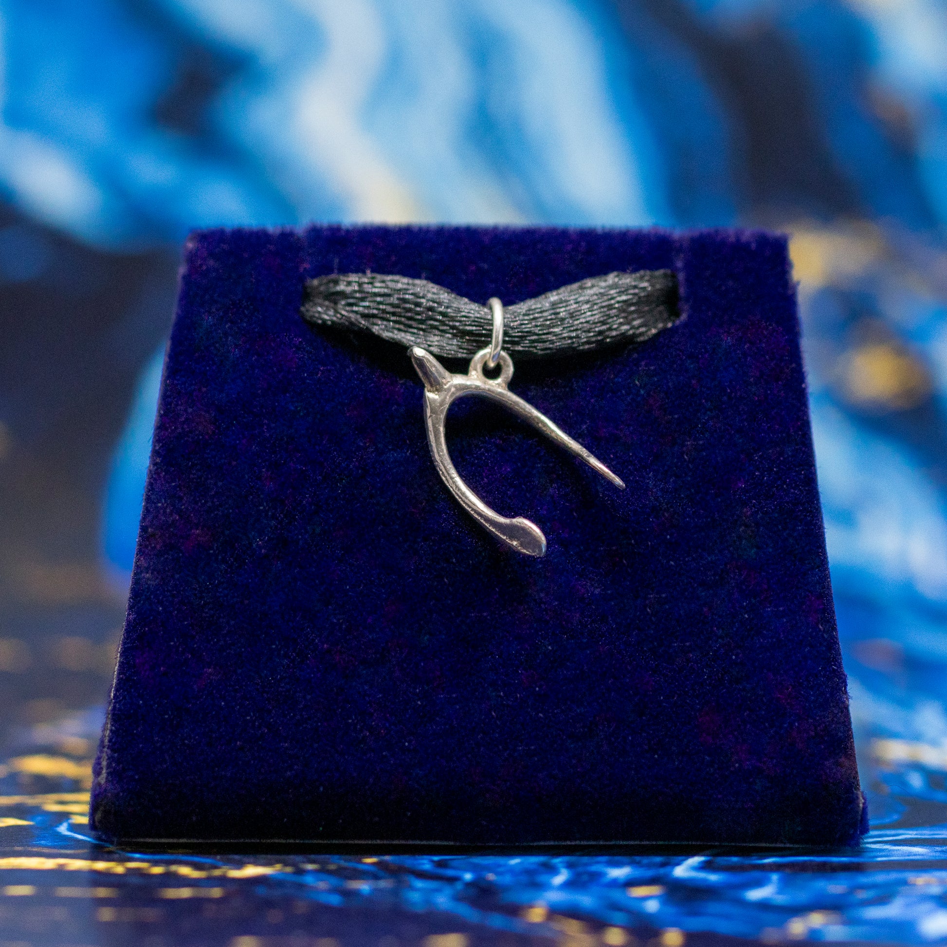 A lucky pendant in the form of a wishbone, that used to hang from a vintage charm bracelet.